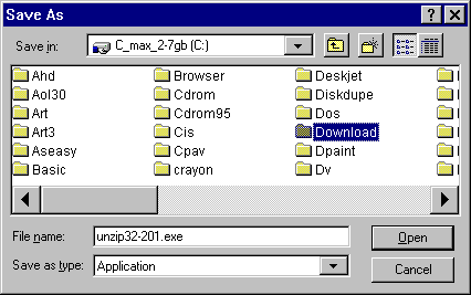 you created minutes earlier. The UNZIP32-201.EXE will then be downloaded (copied) to your C:\Download
